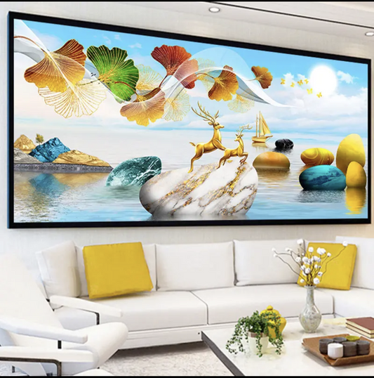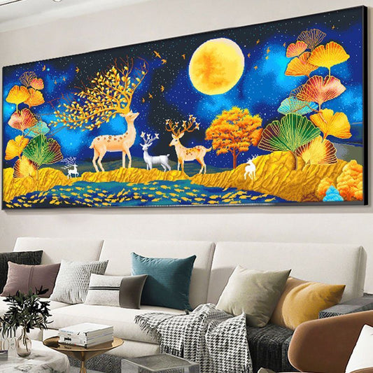 150X64CM Ginkgo elk Deer Cross Stitch Kits 11CT Stamped Full Range of Embroidery Starter Kit for Beginners Pre-Printed Pattern