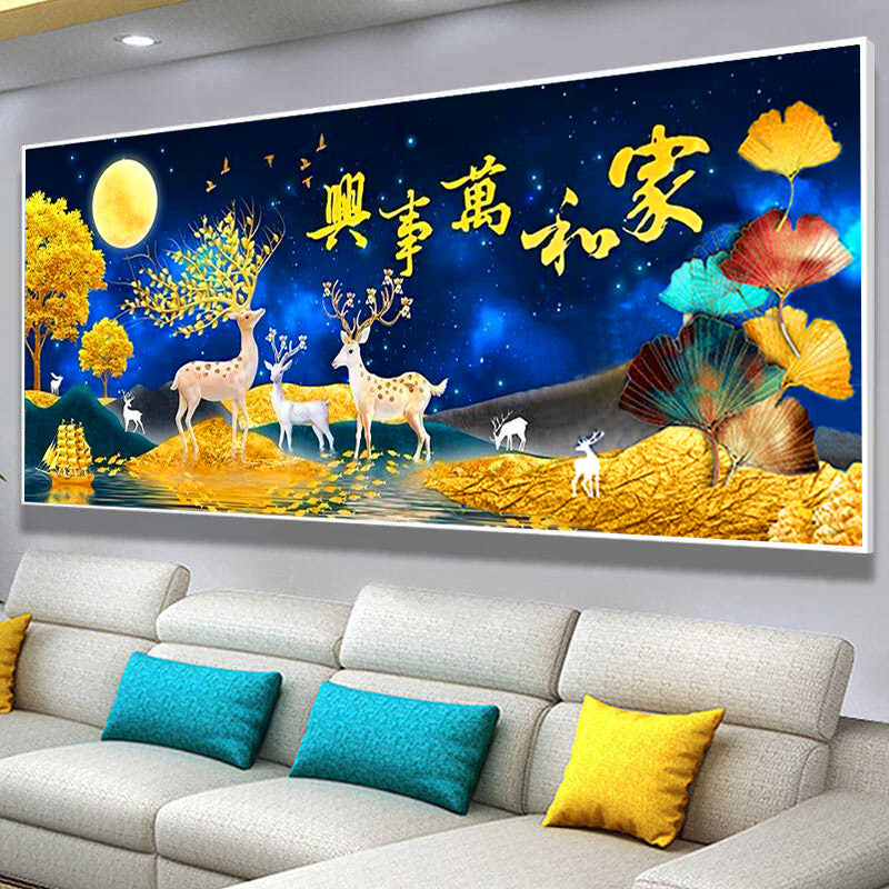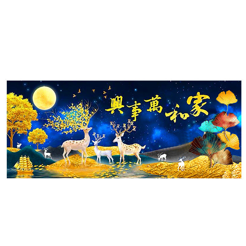150X64CM Ginkgo elk Deer Cross Stitch Kits 11CT Stamped Full Range of Embroidery Starter Kit for Beginners Pre-Printed Pattern