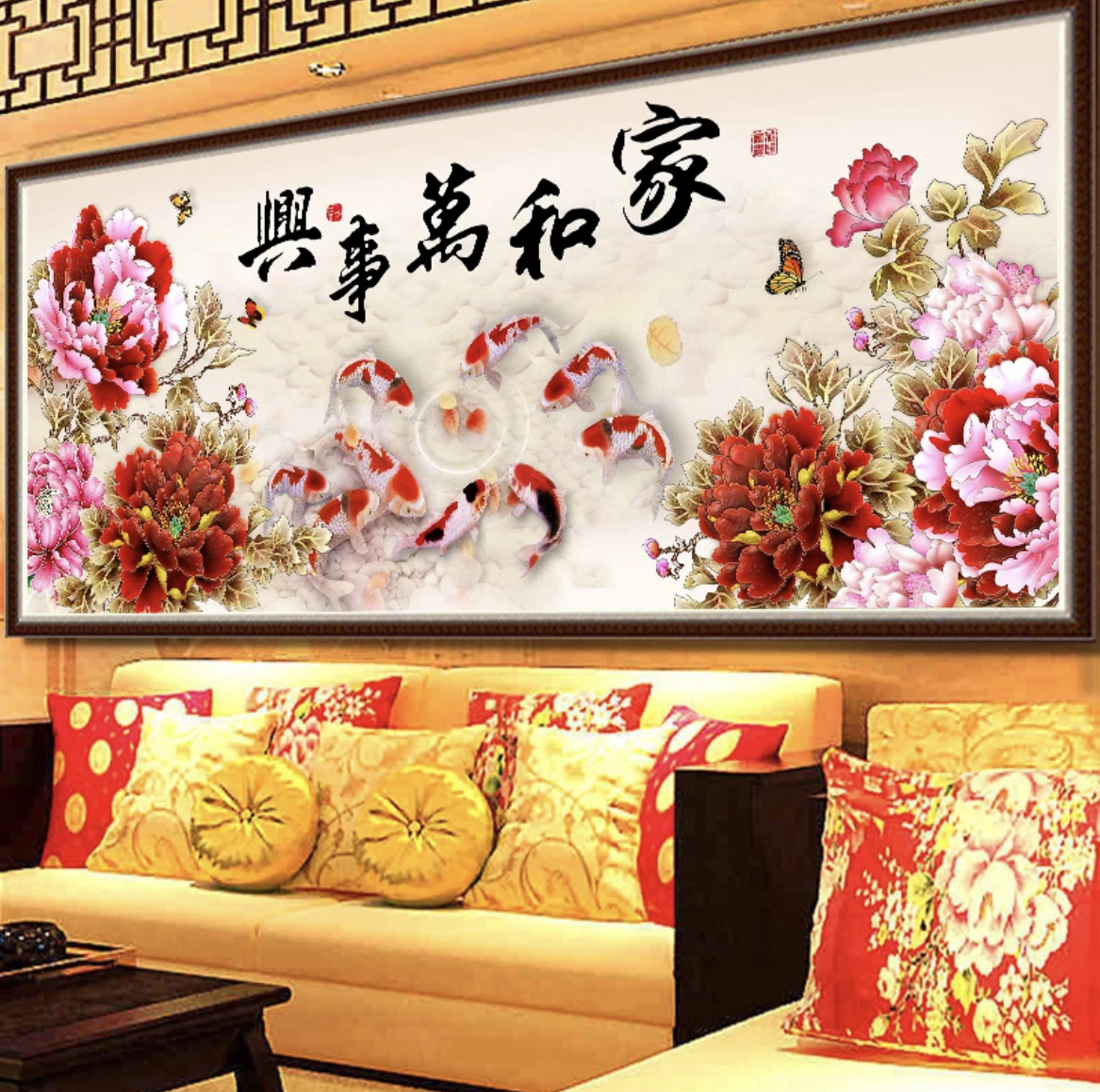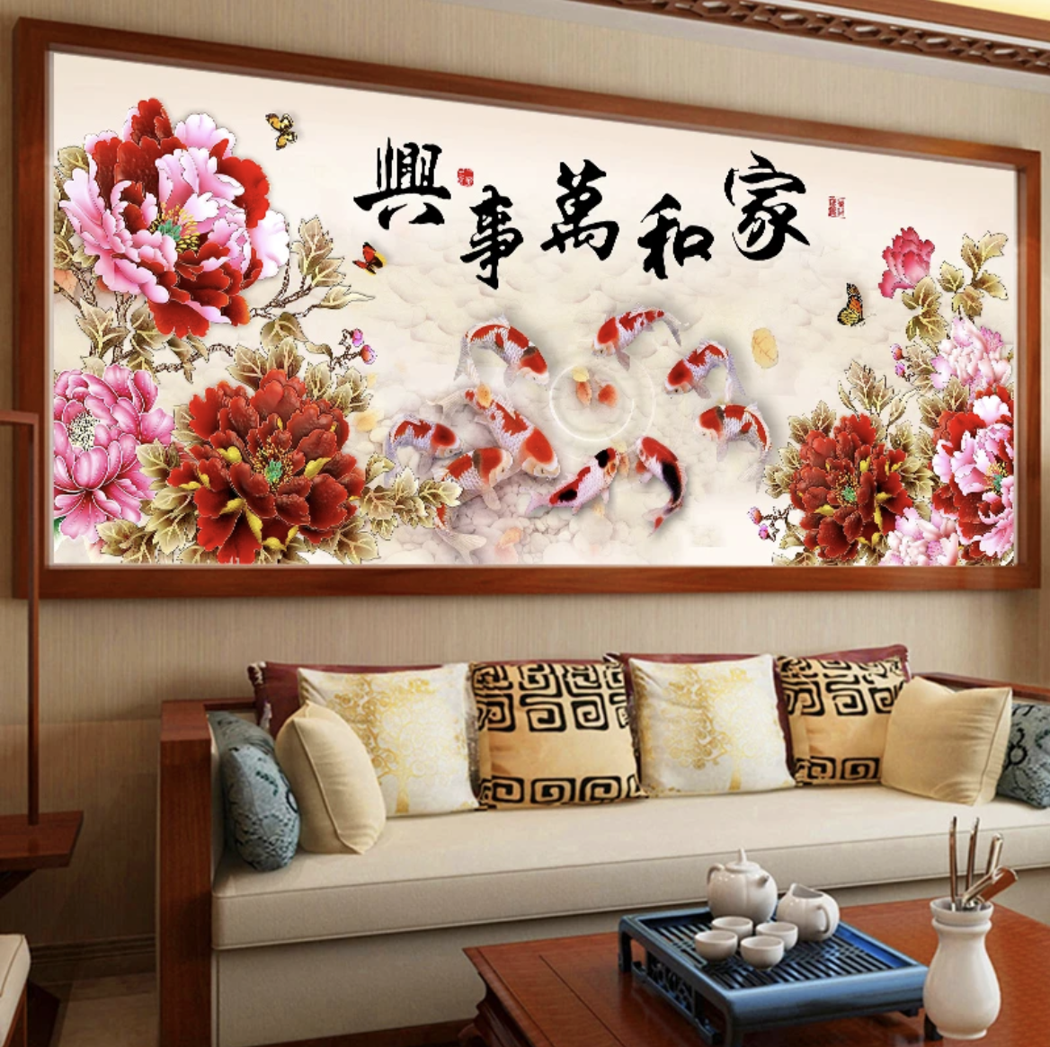 150X65CM - Flower and Fish DIY 5D Full Diamond Painting NO Frame