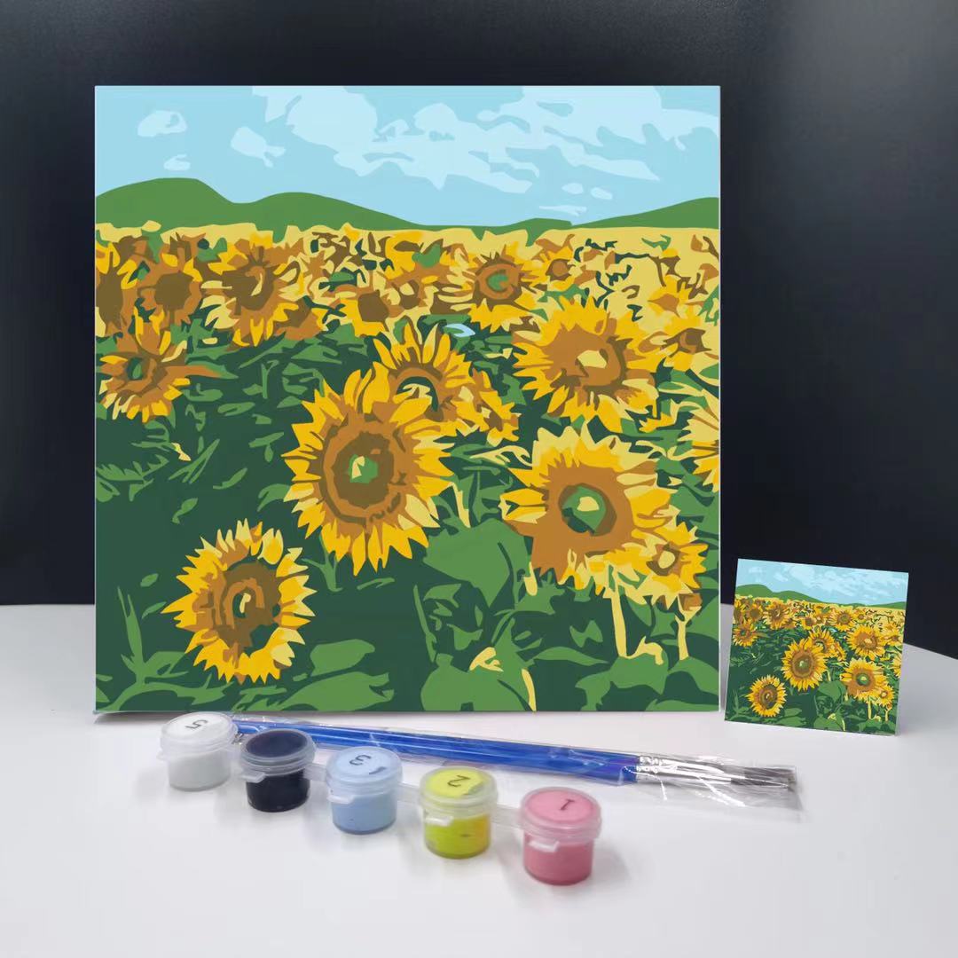 20x20CM Sunflower - Kids with Framed DIY Oil Painting By Numbers