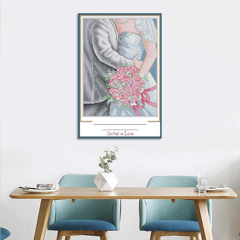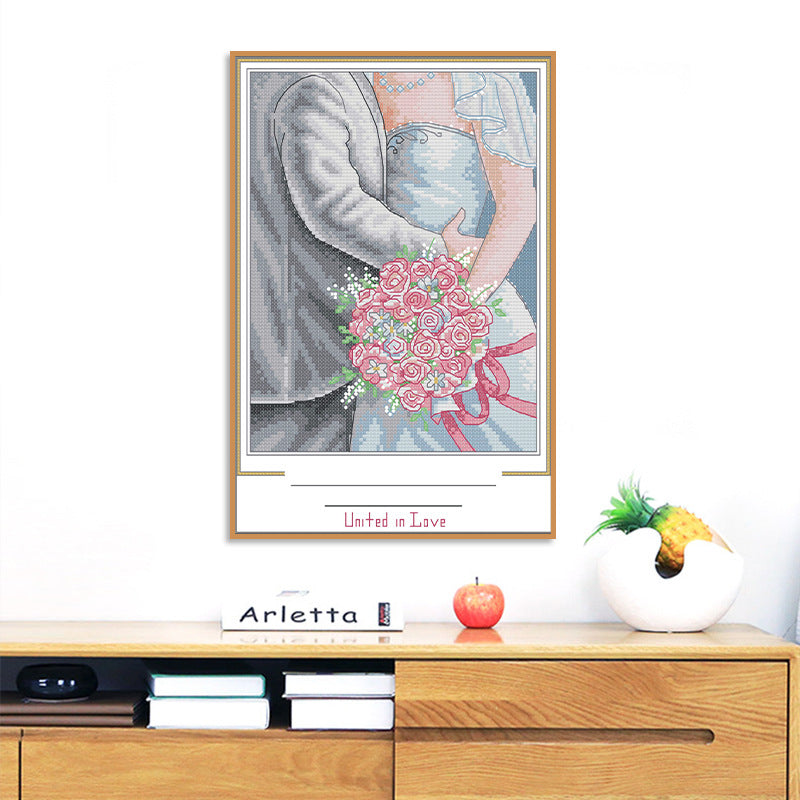 27X41CM Wedding 3 strands 11CT Stamped Cross Stitch Full Range of Embroidery Starter Kit for Beginners Pre-Printed Pattern