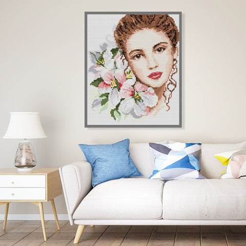 32x37cm Beautiful Girl Cross Stitch Kits 11CT Stamped Full Range of Embroidery Starter Kit for Beginners Pre-Printed Pattern
