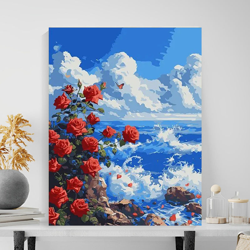40X50CM Seaside Rose Flower DIY Oil Painting By Numbers