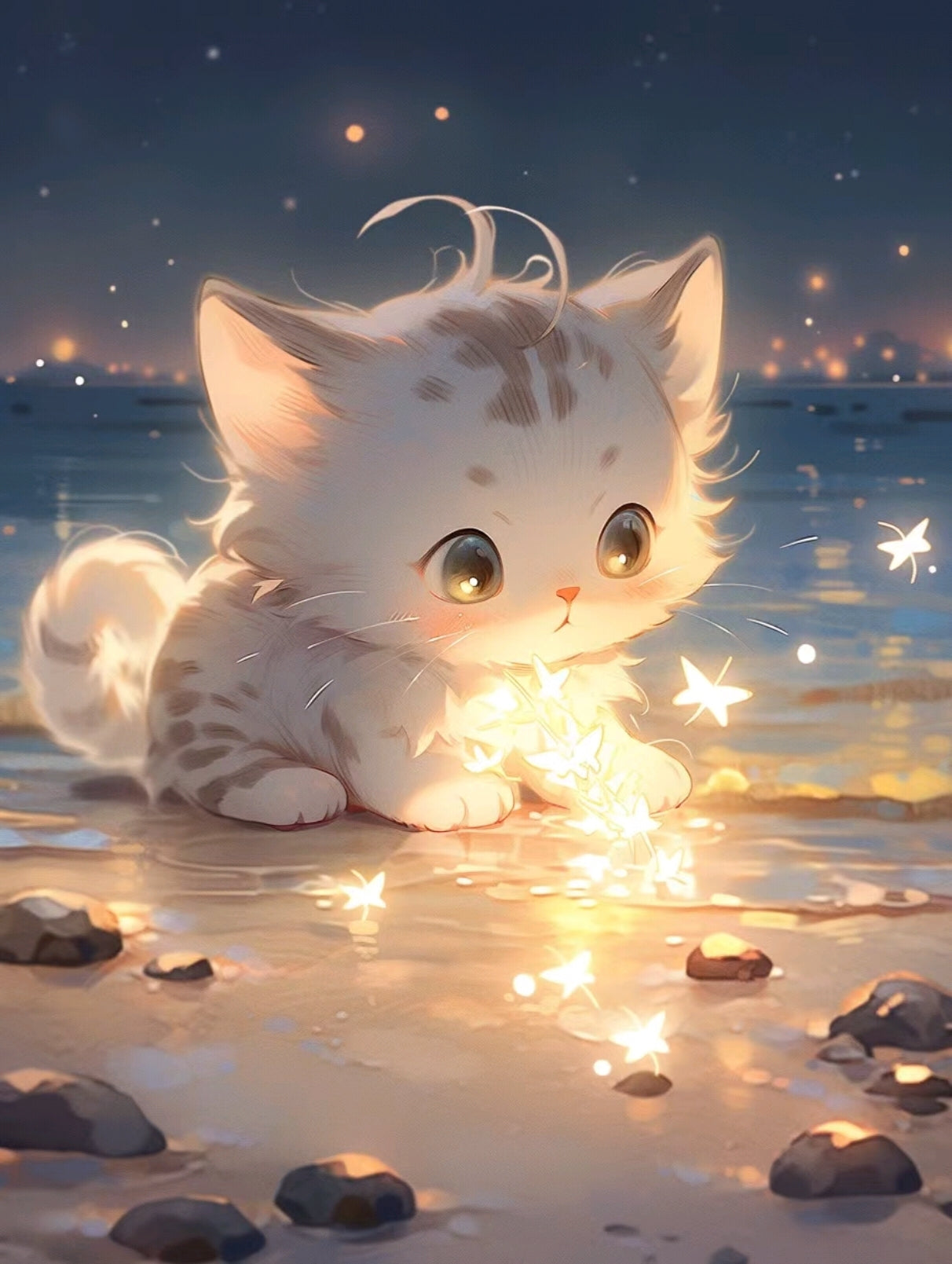 50X70CM - Beach Cat DIY 5D Full Diamond Painting NO Frame
