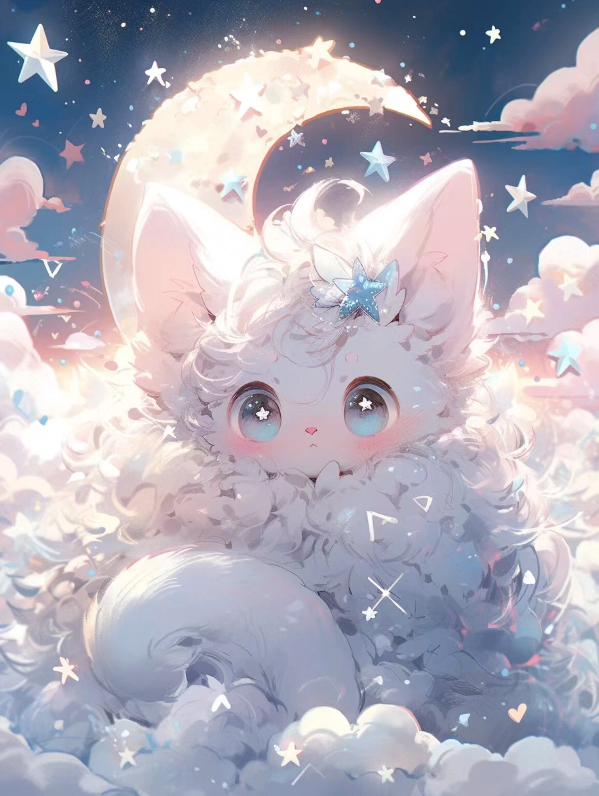 50X70CM - Moon Cat DIY 5D Full Diamond Painting NO Frame