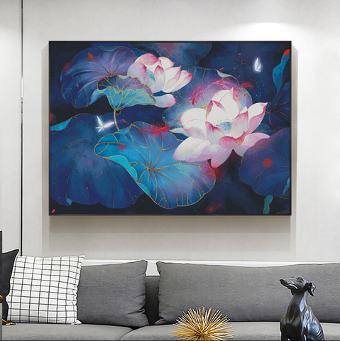 80X60CM Twilight Lotus Cross Stitch Kits 11CT Stamped Full Range of Embroidery Starter Kit for Beginners Pre-Printed Pattern