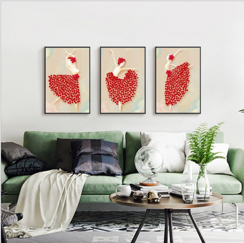 3 PCS 90X40CM Dancing girl Cross Stitch Kits 11CT Stamped Full Range of Embroidery Starter Kit for Beginners Pre-Printed Pattern