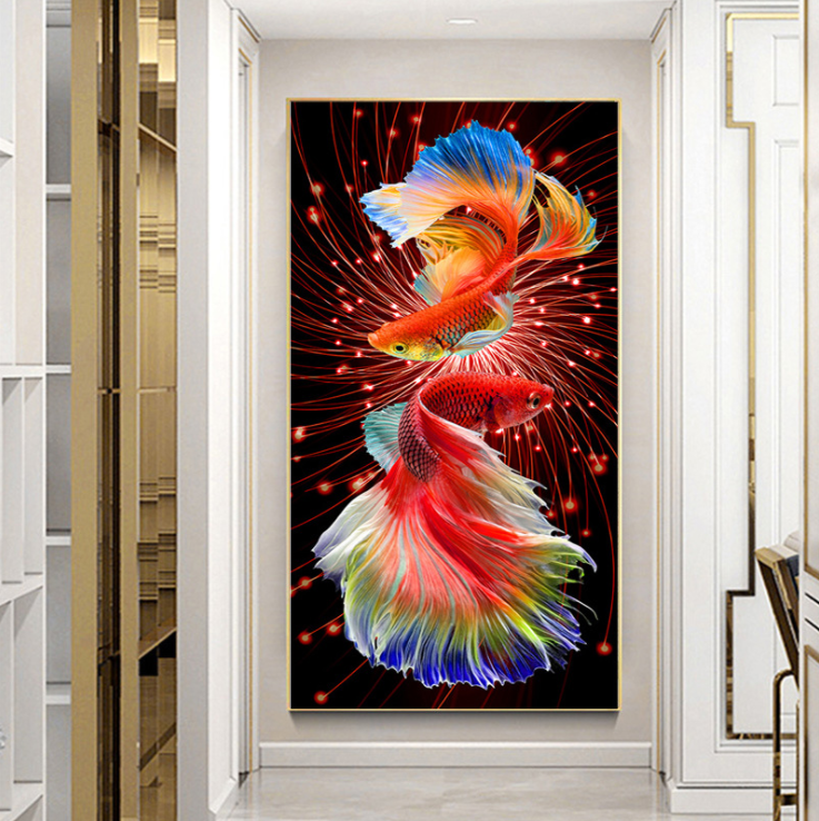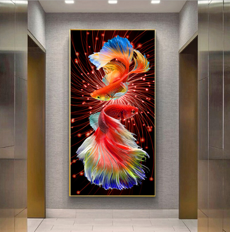 Fiery red double Koi Cross Stitch Kits 11CT Stamped Full Range of Embroidery Starter Kit for Beginners Pre-Printed Pattern-Fish