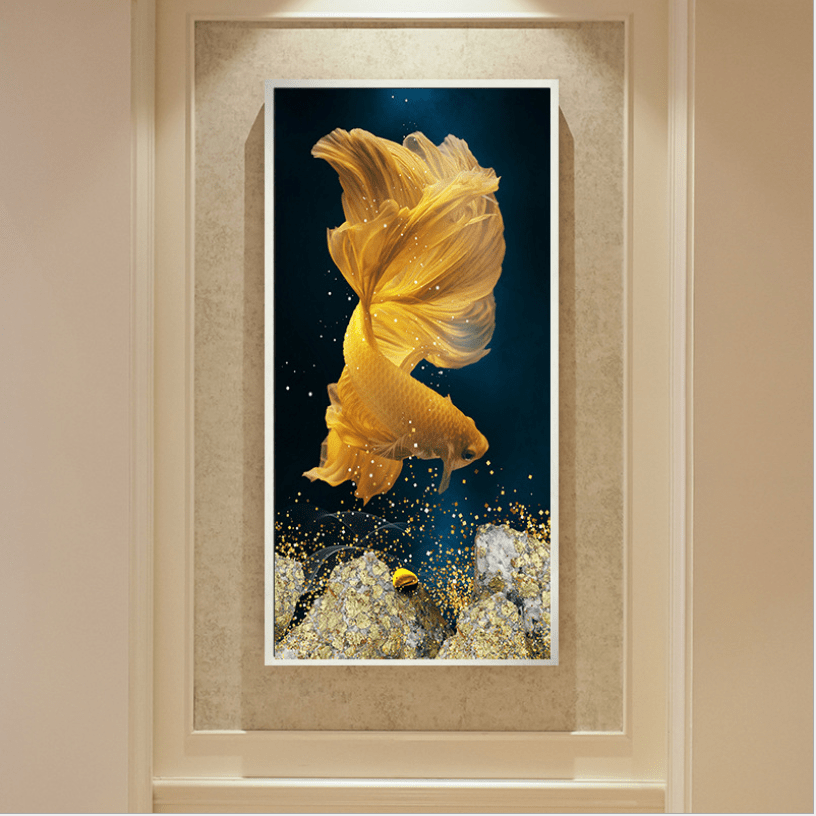 Golden Koi Cross Stitch Kits 11CT Stamped Full Range of Embroidery Starter Kit for Beginners Pre-Printed Pattern-Fish