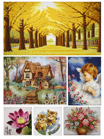 【How many stands of threads should be used】11CT type please use 3 strands threads,2 strands threads for back stitch.One thread is composed of 6 strands, so you need to divide the 6 strands into two 3-strand lines before you work.